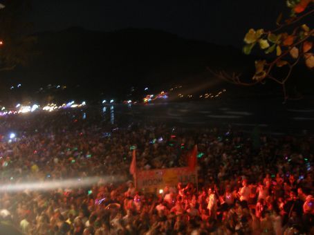 In all honesty our life in kho samui was a bit like Groundhog Day. Sleep by day, have a meal around 6, get a few pre-drinks in 7/11, get into pretty engaging although slightly tipsy conversations on the stoop of our hotel room, head out and hit the town and arrive home at some point near dawn. We discovered M-150 on kho samui. It is the Thai version of Red Bull which essentially keeps you wired for hours on end. Since Kho Samui, some of us have had to give it up… So that was our lifestyle and many of the M-150 induced hilarious carry on which happened on the island has been captured by video on my iPod. These videos cannot be made available to the public… For Diarmo and Kylos sake! Unfortunately the coolest people we met on Kho Samui were in fact Irish people, we didn’t come half way across the world to mingle with our own but we did meet a fair few great people. The party on Kho Samui was pretty good but this was just a warm up for Kho Phangan.