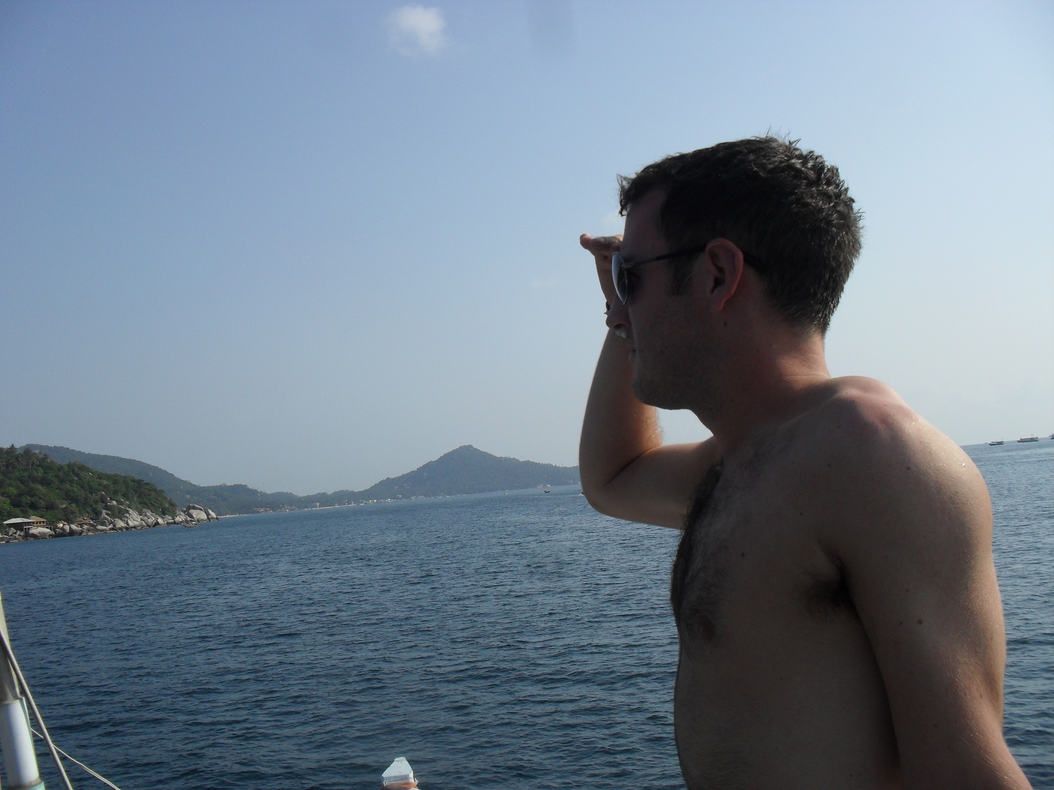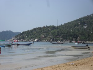 On the Saturday, Diarmo and I actually did something. The girls asked us to go snorkelling with them and we of course agreed, we needed an activity badly! Kylo declined, he’s afraid of fish. So we set off at 12 and sailed around the island to the best snorkelling spots. It was great to see the island from a distance riding the waves while the sun shone in the sky. The snorkelling was brilliant, we saw some amazing fish and it was great how they came right up close to you without actually touching you. However, one fish was different, much bigger and uglier than the rest and he had a target – Rachel. Diarmo and I were under water when we saw a huge fish storm up to the surface and begin circling Rachel. We shouted at her to warn her but she only returned a look of confusion wondering what we meant at all. She only realised when she got bitten… She screeched and jumped and lost a flipper in the process. Diarmo and I could barely control our laughter… We all went back to the boat and Rachel was ok, the trigger fish, as our guide informed us, cannot seriously harm people, it does entertain people as we found out. Diarmo continued laughing for a good hour! So we ventured onto the next diving spot and fair play to Rachel, she got back in the water. There the 5 of us got into a conversation about the election back home and Diarmo pointed out that this is probably the strangest place in the world where election talk is going on. Off the coast of Kho Tao, 28 degrees, wearing snorkels and exotic fish swimming around us. Yep he’s got to be right!