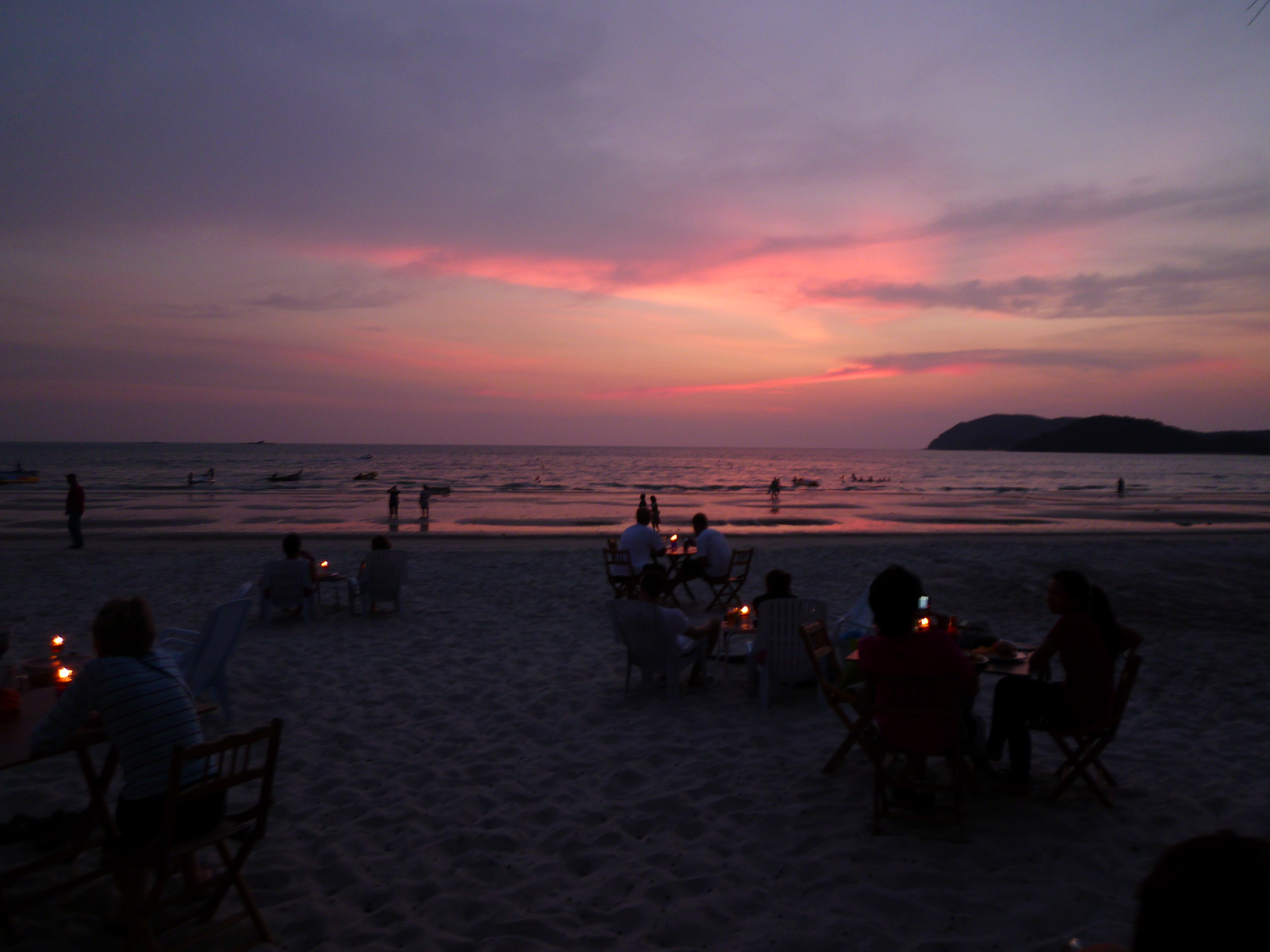 The film ‘The Beach’ made the Phi Phi islands famous a decade ago. In the film, Leonardo DiCaprio finds a beautiful island untouched by parasitical tourists. The Phi Phi we found has become a hot tourist spot. Fortunately despite the masses of tourists it is still a magnificent island and we discovered a nice mix of beautiful beaches and rocking bars. As we ventured through the Thailand, the prices of things were getting more and more expensive. Even though we could still get a lovely dinner for €5 and a beer for €1.50, we were reminiscing on the days in Vietnam where a dinner and 3 or 4 beers would cost €4! Anyway so Diarmo decided to do a diving course on Phi, he had planned on doing one in Kho Tao but alcohol was too much of a distraction for him. So for 3 days we swam with colourful fish while i drank coffee and wrote blogs and lay on the beach. Despite being in the company of a slightly mad Swedish fella, Diarmo had a great time and i was just happy lazing around in such a beautiful place. So on Sunday night Diarmo’s course had ended and it was time to hit the nightlife of Kho Phi Phi. And this was a special night – Liverpool vs. United. Once again, one of us would end up devastated. The man who Diarmo described as ‘talentless’ tore united to shreds. A distraught Diarmuid left for most of the 2nd half while i jumped around on my own in joy. And so i celebrated with several pints afterwards while Diarmo drowned his sorrows.