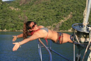 Later that evening we had a very nice dinner and more people got involved in the group afterwards. Still though, it wasn’t a great bunch, you could just feel the lack of atmosphere in the air. At one point one of the english girls asked another in a very serious tone ‘Is there a lot of fat in pineapples?’. Oh dear. We had been sailing the whole day and had banked in the dark, but the next day we would see the beauty of the Whitsundays.