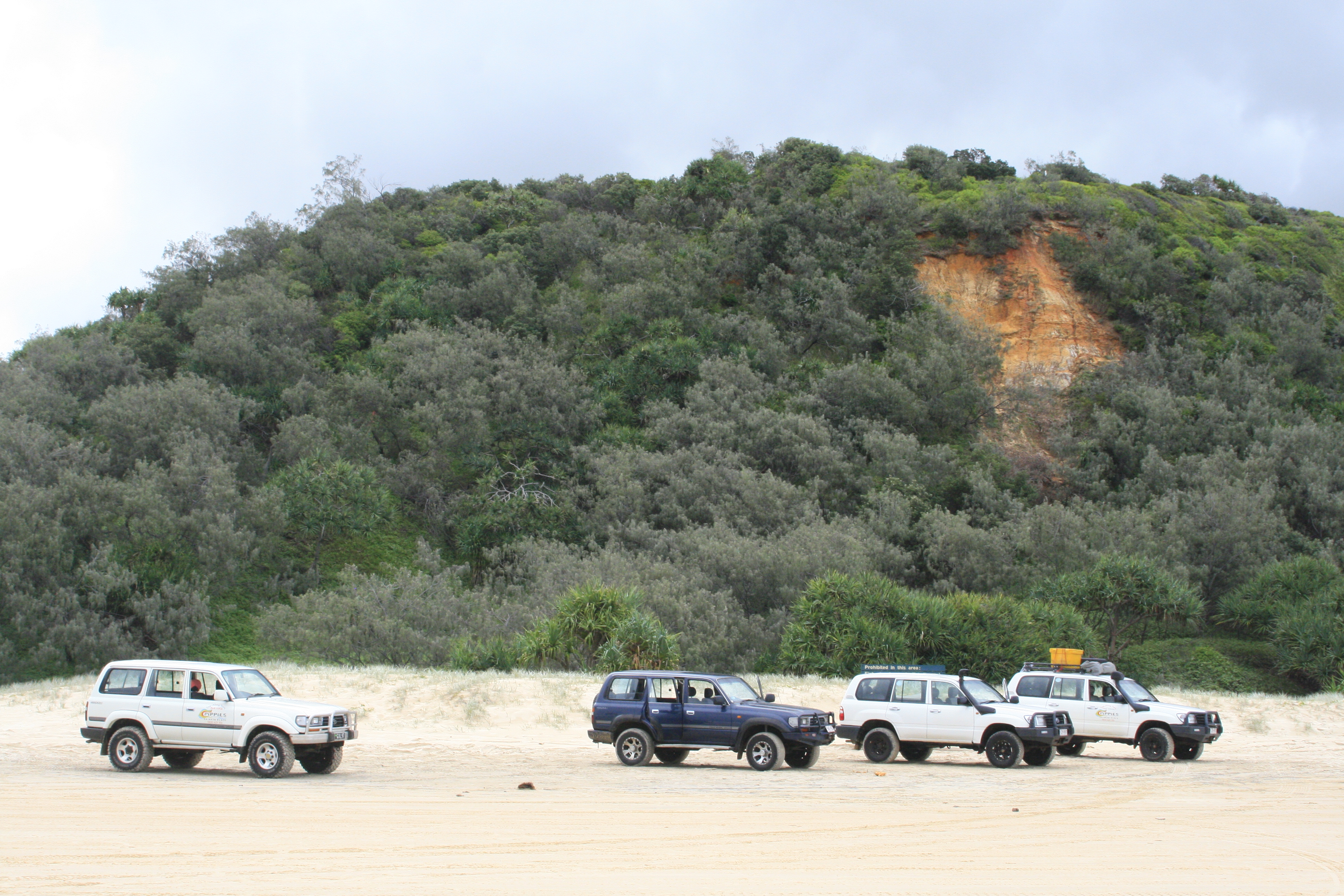 We were absolutely not allowed to swim in the sea around the island as it was a breeding ground for Tiger sharks. There was about 34 people on the tour and we were divided into 4 groups as there would be 4 land rovers amongst us. Oh that’s the best part – you cannot tour Fraser Island unless you have a 4×4 and on the tour we would be the drivers. So our groups were sent off shopping and so Ela, Diarmo, 2 Canadian lesbians, an English brother and sister and I went off to IGA and spent an obscene amount on food. As for the alcohol, Diarmo and I suggested we should all buy our own because let’s face it, it wouldn’t have worked out fairly at all!