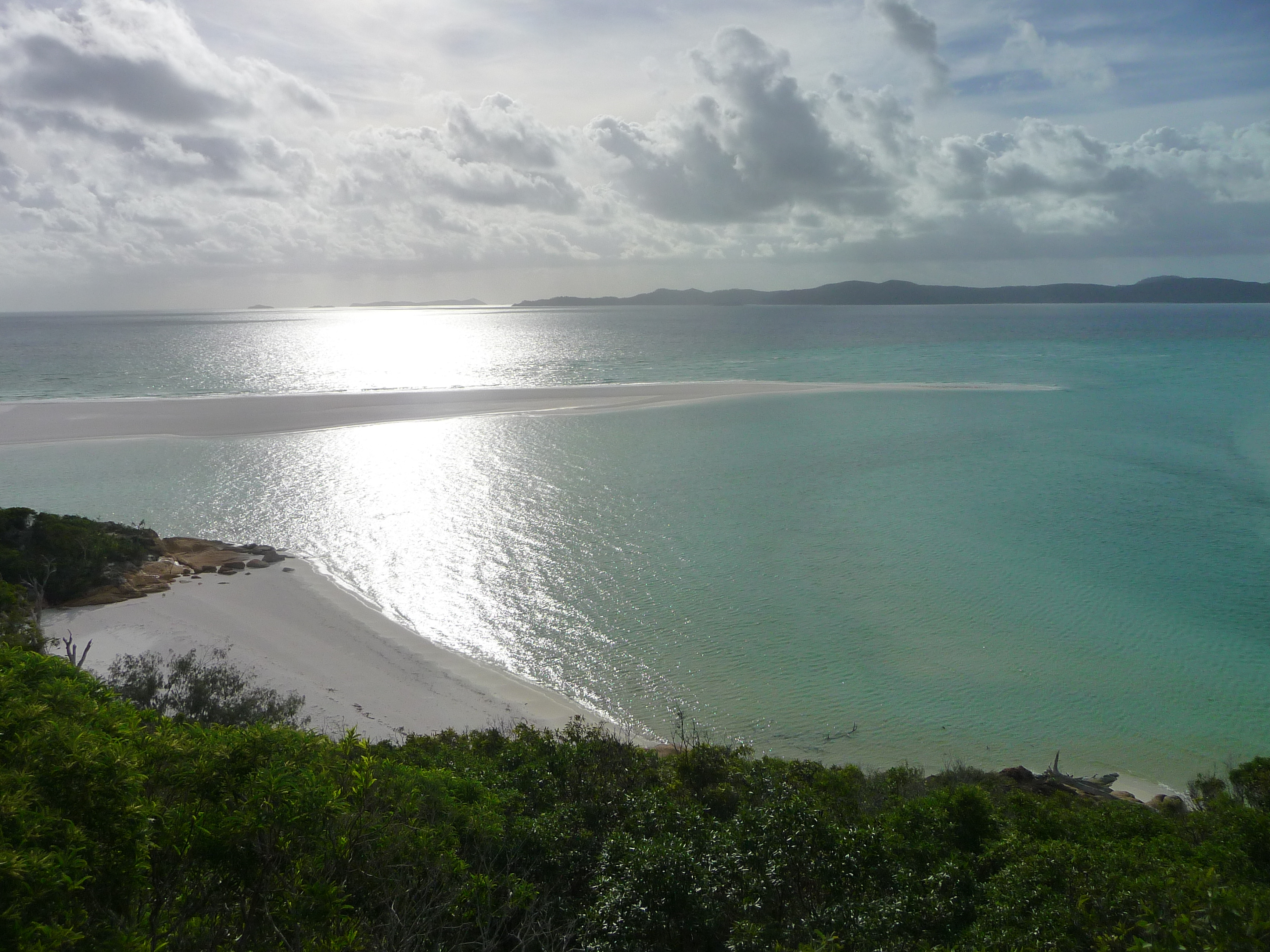 Our first stop was a little island where you stopped at a little beach which was not pretty in the slightest, but a trek up through the forest led to a view of Whitehaven beach, the most amazing beach I have ever seen. The sand was whiter than I had ever seen and the water absolutely crystal clear. We ventured down and spent a few hours there until the rain started pouring down and we had to hide in the trees. The rest of the day was spent mainly snorkelling amongst the little green islands and we saw some fantastic coral and fish, the highlight being a massive sea turtle which was definitely showing off; about 15 people around her and she just looked delighted to have the attention.