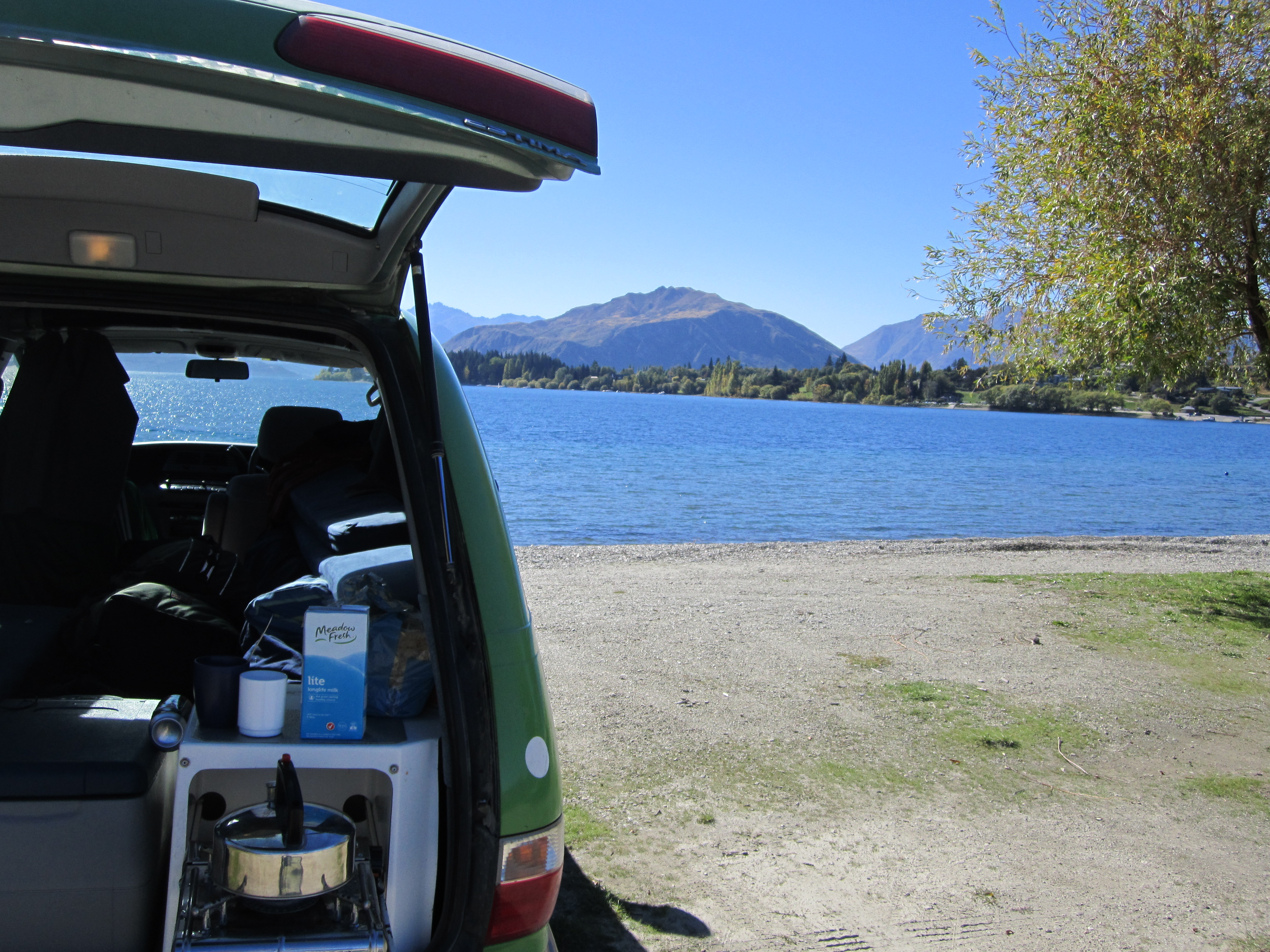 In late afternoon we headed on to to Te Anau and found a nice campsite by the lake. We were having a beer sitting out when we heard a woman screaming from one of the chalets across the way. After a few minutes being the brave man I am, I stood up and did what was right, called the police. After a 10 minute conversation with dispatch trying to work out where exactly we were and how to get there, they were able to send someone out. When they arrived, Diarmo and I hid under the covers in the van, with the lights turned out, peaking out at the scene. The cop knocked on the door of the chalet and a big Maori guy answered. ‘We’re dead’, Diarmo said.