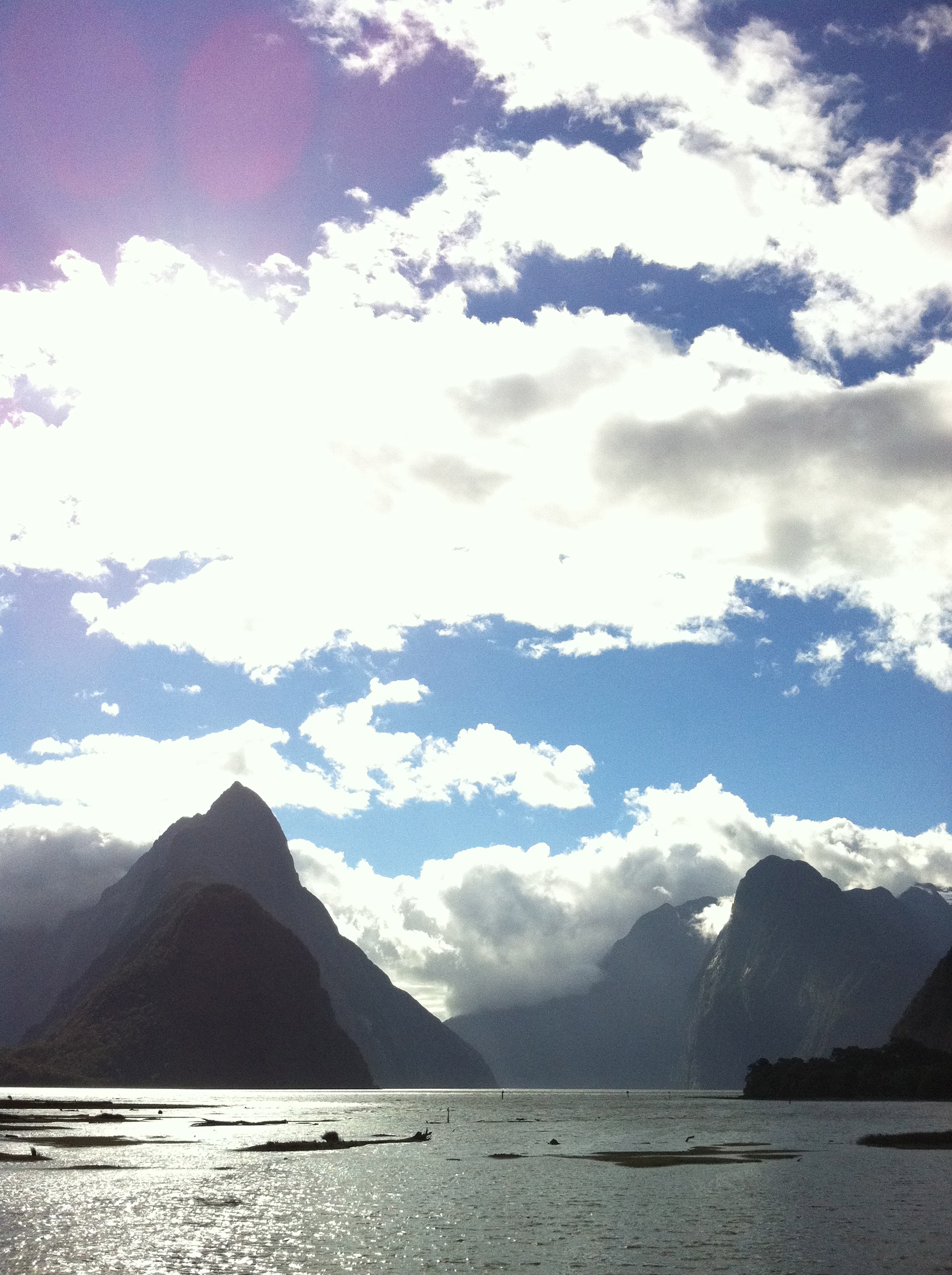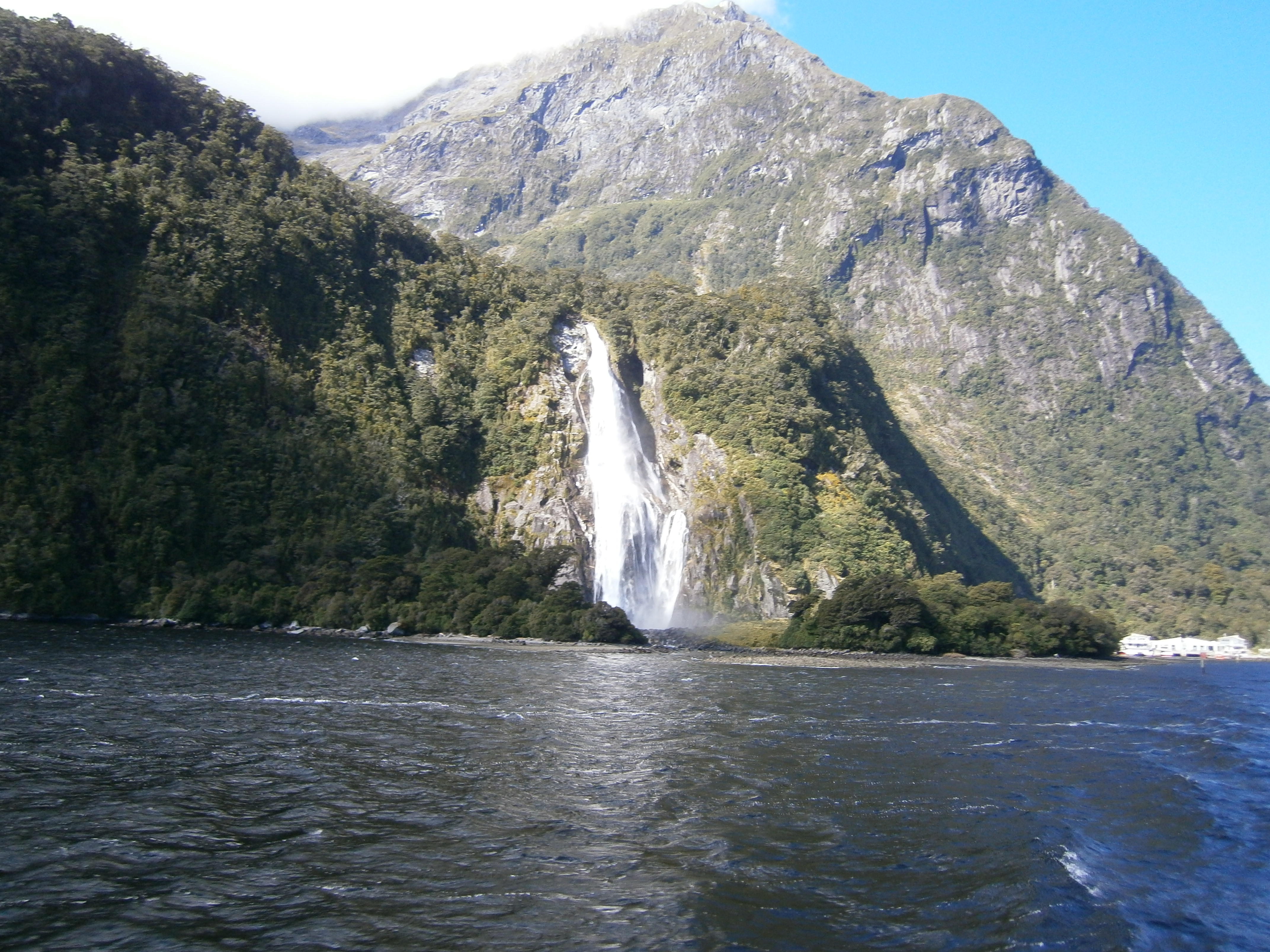 We were continually extremely lucky with the weather, glorious blue skies each and every day. Our next stop was Milford Sound and it was the greatest drive I’ve ever done; in and out of hills, lakes and creeks, taking us to a long and windy mountain pass leading us down to the great fjord of Milford Sound. So we took a cruise out on a lovely boat and it took us to see towering rock faces, great waterfalls, seals lazing on the rocks. It was very Jurassic Park.