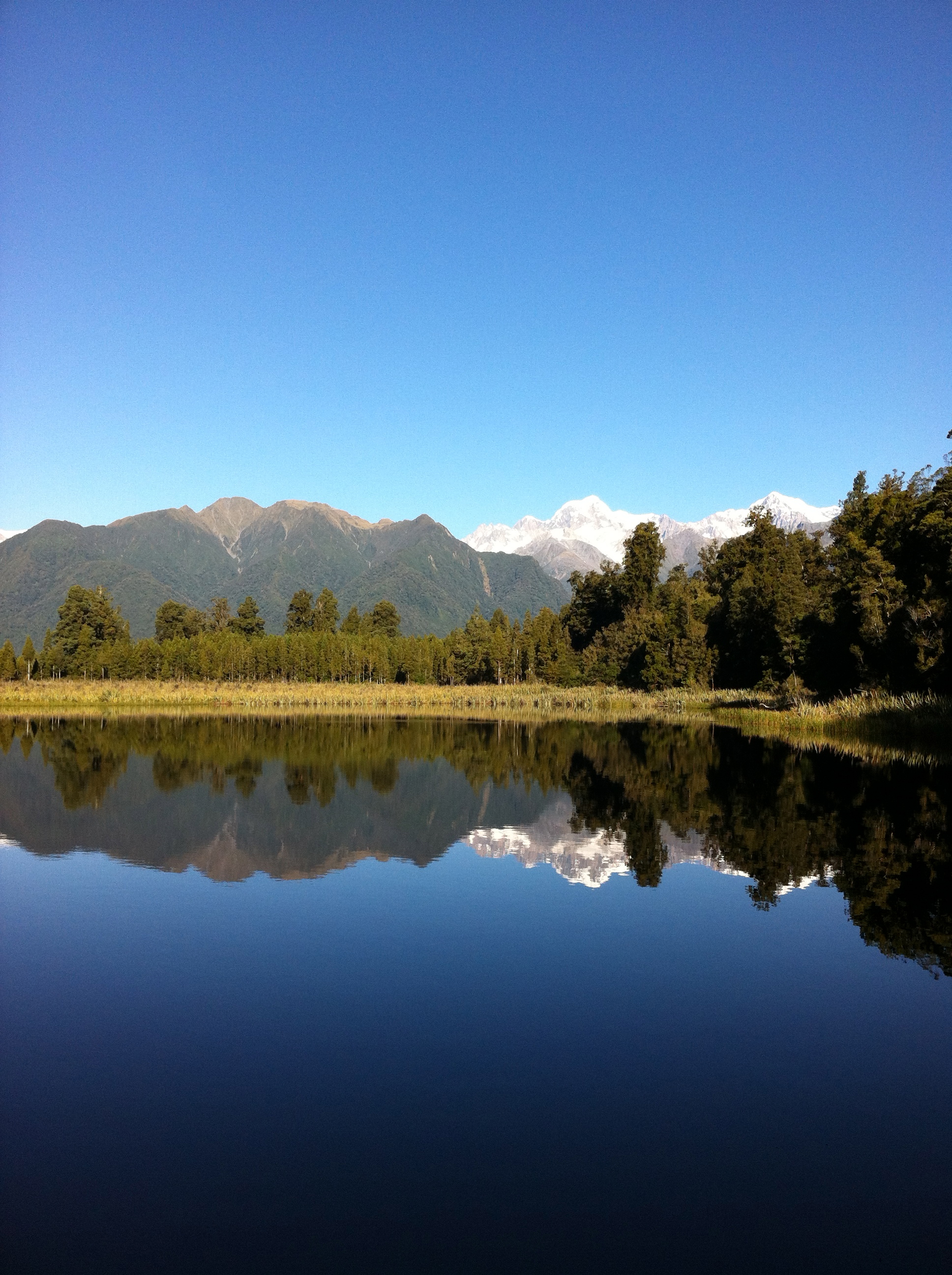 We reached the Fox Glacier area early evening and with time to spare before sunset we took a long walk to a ‘mirror lake’, which is as awesome as it sounds. The hills, trees and snow-capped peaks reflected so perfectly in the lake before us and this was the most beautiful thing we had witnessed in New Zealand. This country seemed like it was painted or sculpted.
