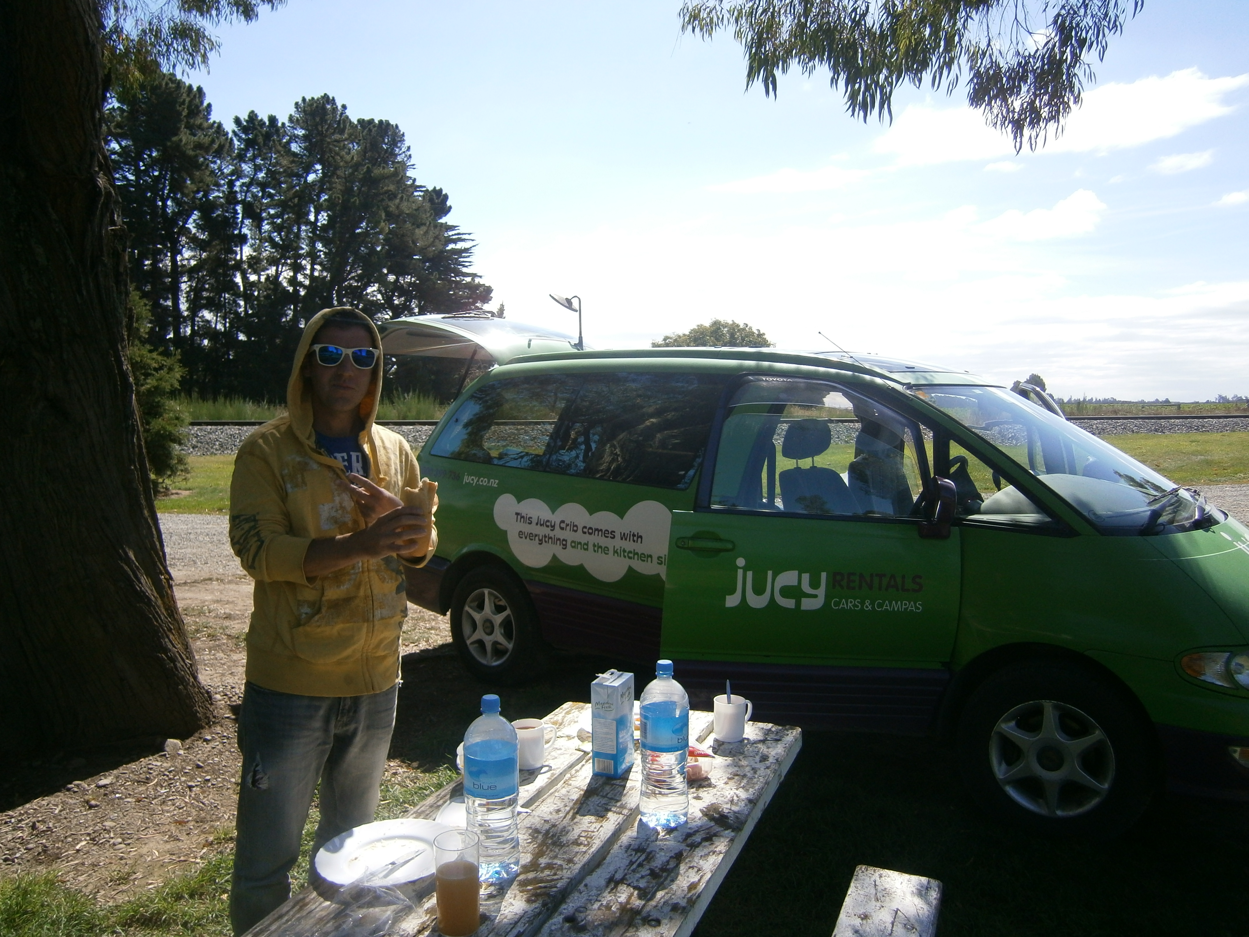 It was a long night, the van rental place wasn’t open until 8 am and when we stepped out to catch a taxi at 7.30 it was freezing cold and raining. We hadn’t worn jeans or jackets in quite a while, it felt wrong. So we collected our beautiful green Jucy van and set off from Christchurch into the unknown. No Sat Nav or Google Maps to help us now, just a map and our instincts. Within a few hours of driving, the clouds started to clear and the landscape began to transform before us; rolling hills and valleys began to appear and the sun shone brightly in the sky.