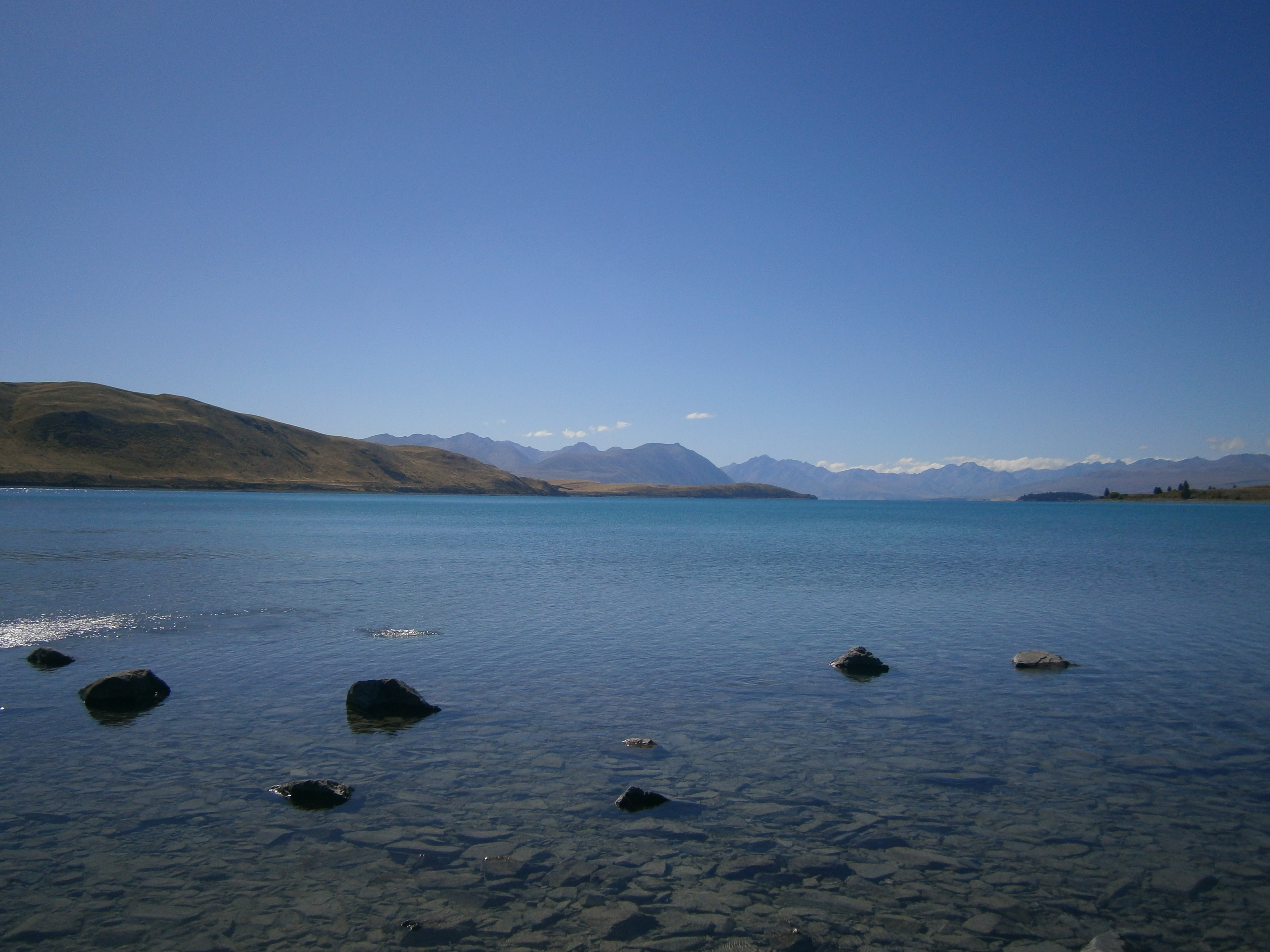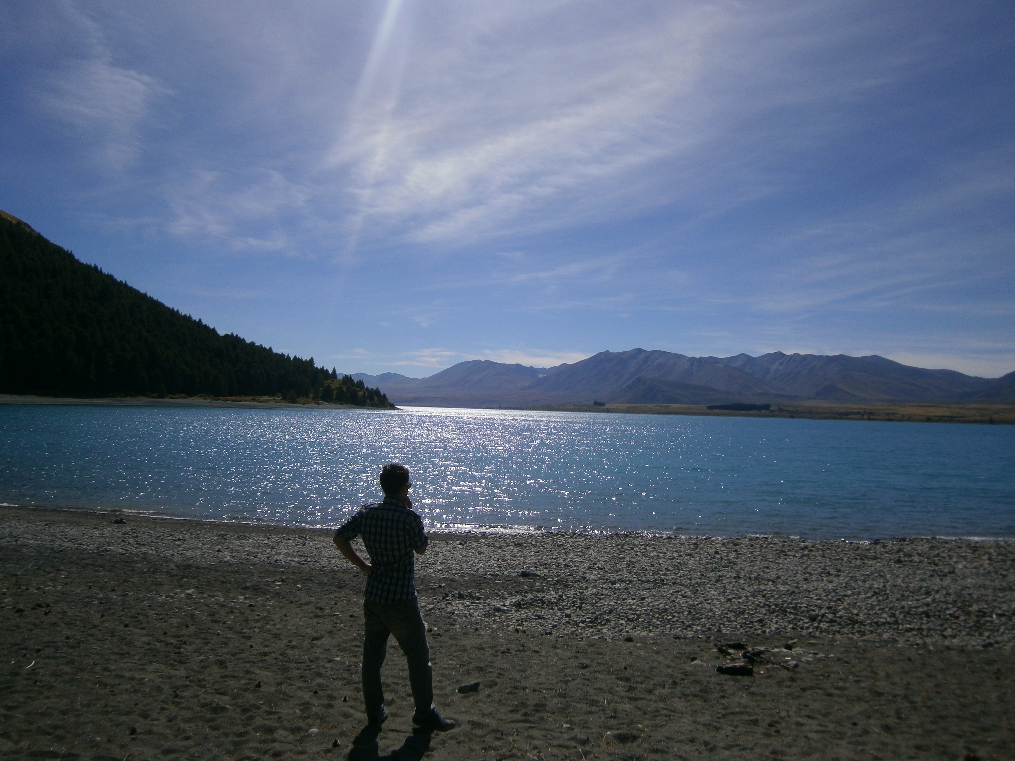 We stopped to stock up on food and of course beer and took a much needed nap as the tiredness hit us like a train. Our itinerary was somewhat up in the air which suited us very well. We had 11 days to explore the south island and get back to Christchurch for our flight to Bangkok and had researched on where the hot spots were on the island. Lake Tekawa was our first stop and when we arrived, our jaws dropped. We left the van and scurried down to the water’s edge. The beautiful blue lake sparkled like nothing we had seen before. The only sound was that of the breeze and it was a place you could sit for hours without moving a muscle. We did move; just to get beers.
