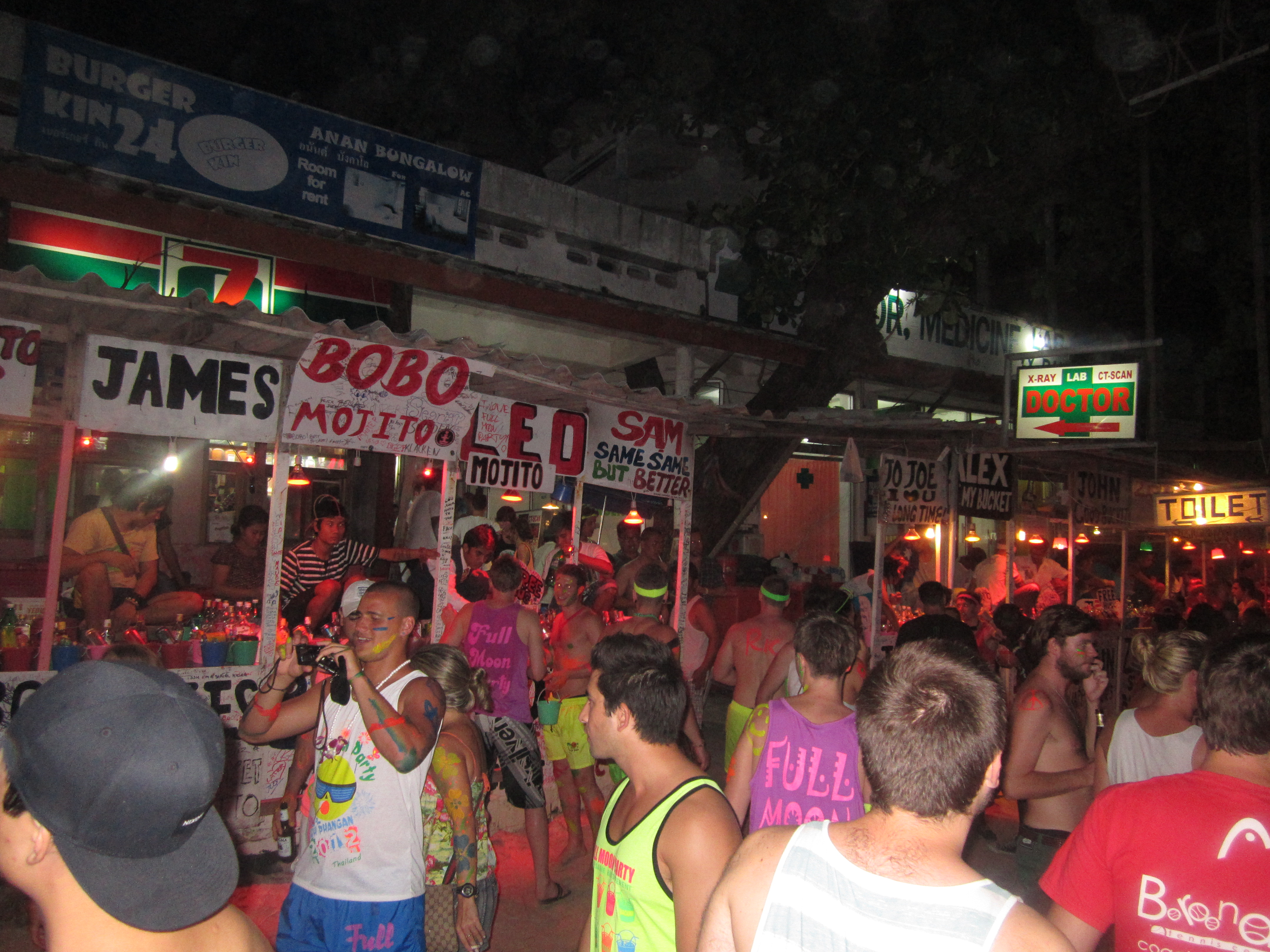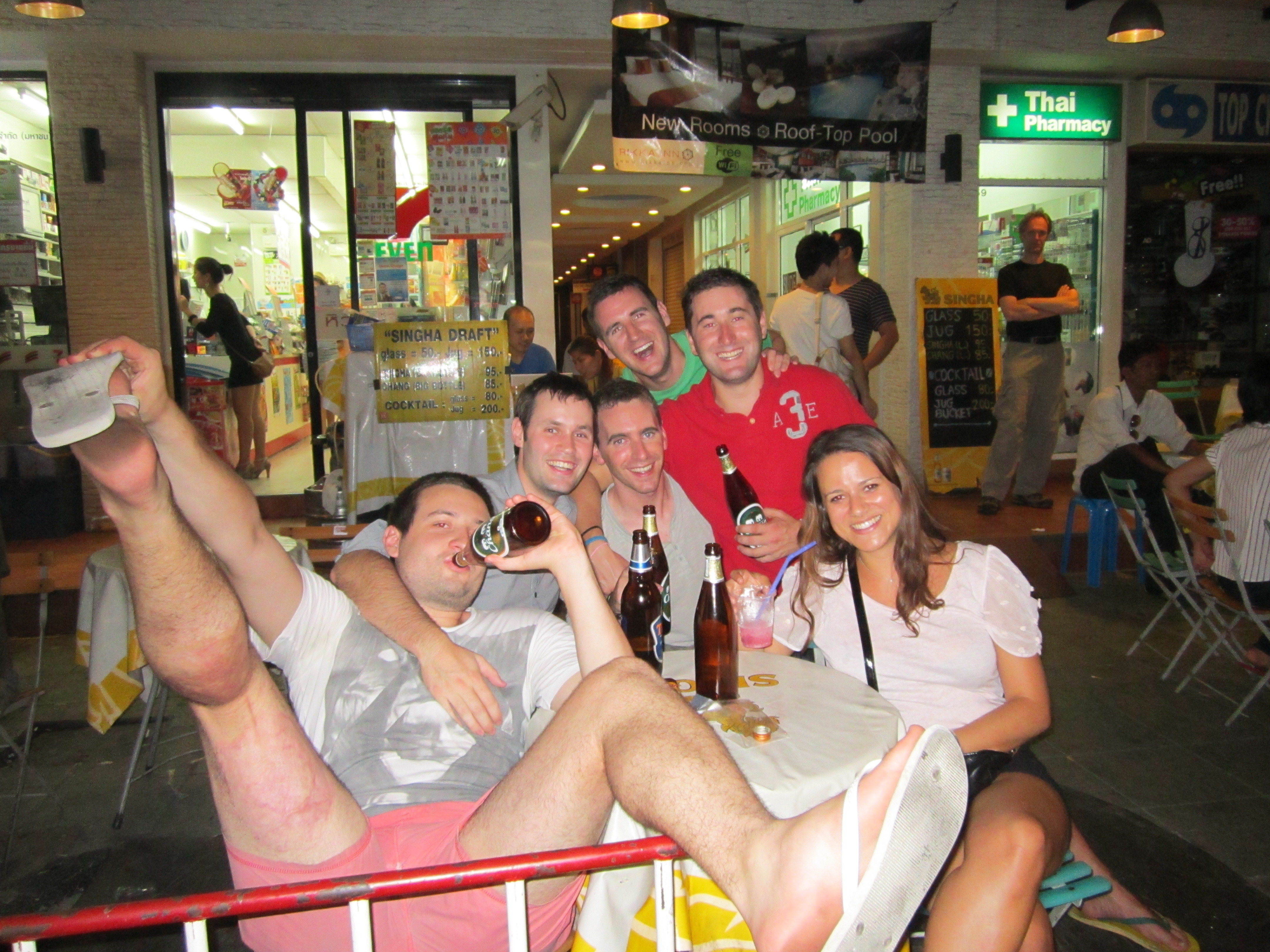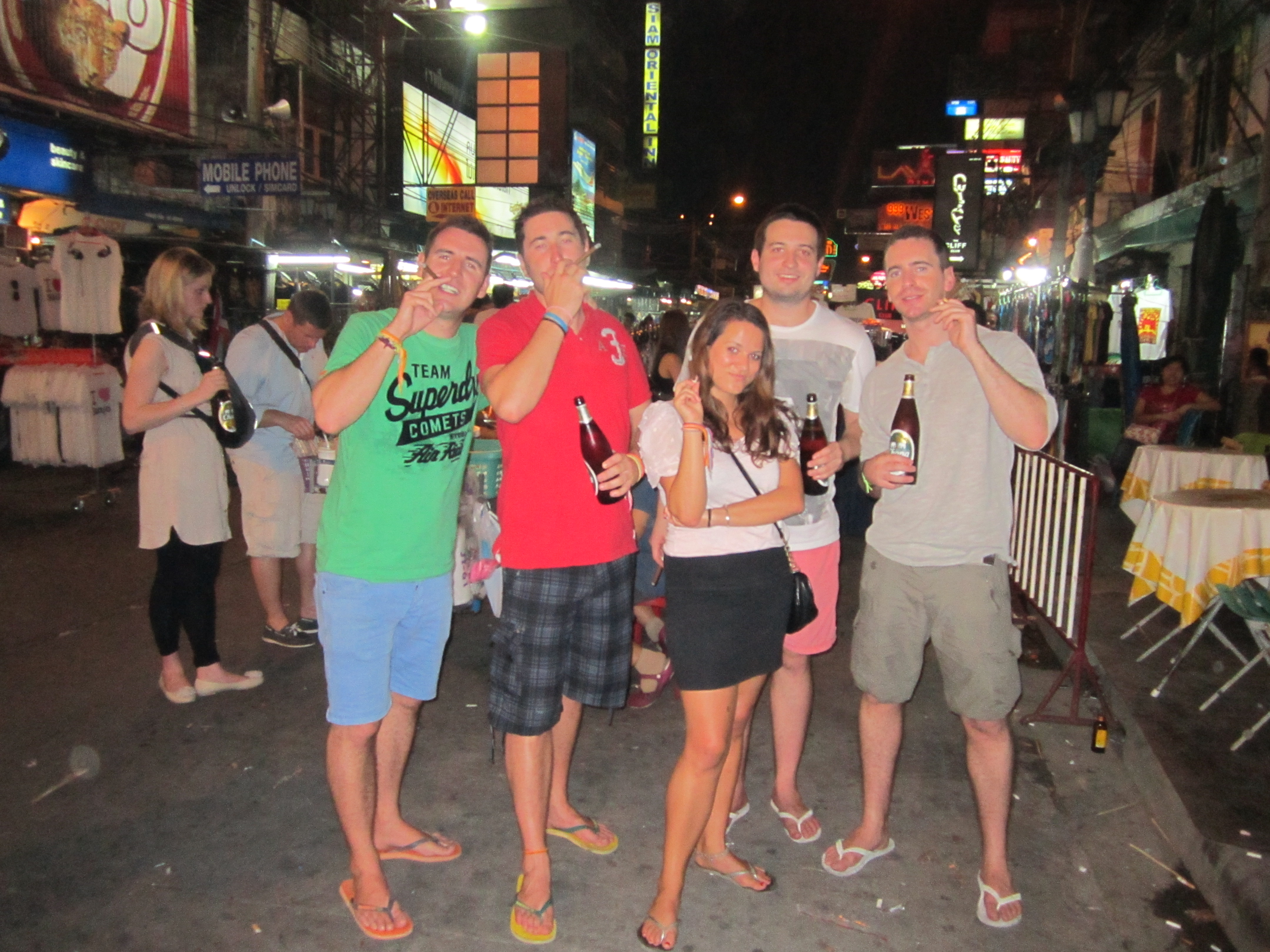 Our night began in Khao San Central and we welcomed our boys with open arms. Charlie hadn’t met Byron and Andy before, it took them a good 25 minutes to become best friends. Diarmo and I had developed a familiar ‘night out route’ on Khao San road, this being our 7th time here. Beer towers in Khao San Central; followed by cocktails in the ‘Acoustic’ bar; Changs and Pad Thais on the street accompanied by some general comedy involving street sellers and randomers. And then off to hit the Bangkok dance floors.