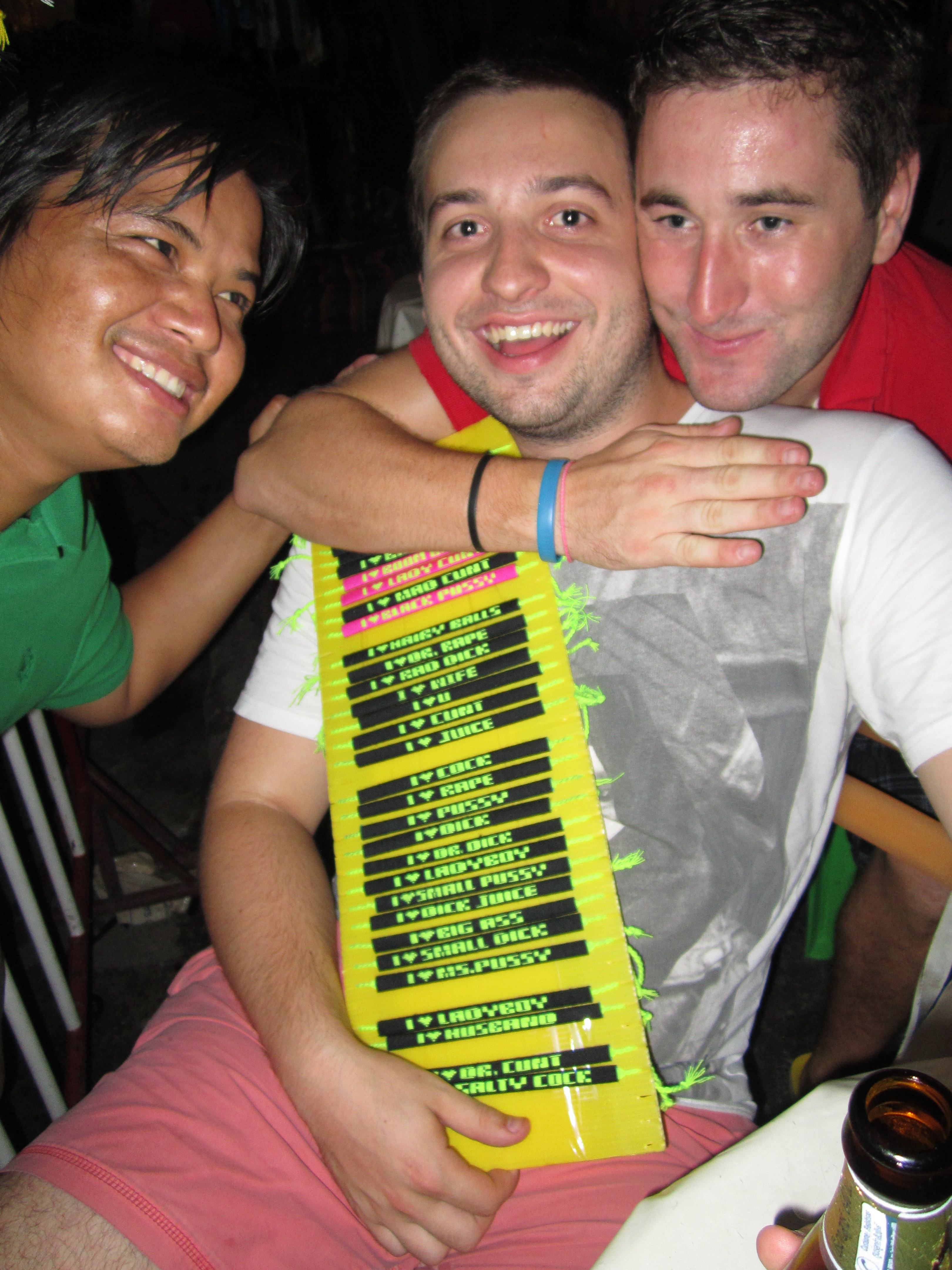 This night was similar to others but with more props and characters and the most laughter we’d ever had in Bangkok. After the Acoustic bar cocktails, we hit the streets and I searched for a street seller who sold fine cuban cigars. I found them eventually and we all pretended we were Fidel Castro for an hour. Byron decided to splash out too, spending 30 dollars on a rack of bracelets with dirty words on them. This type of carry on is what we call ‘The Magic of Khao San Road’.
