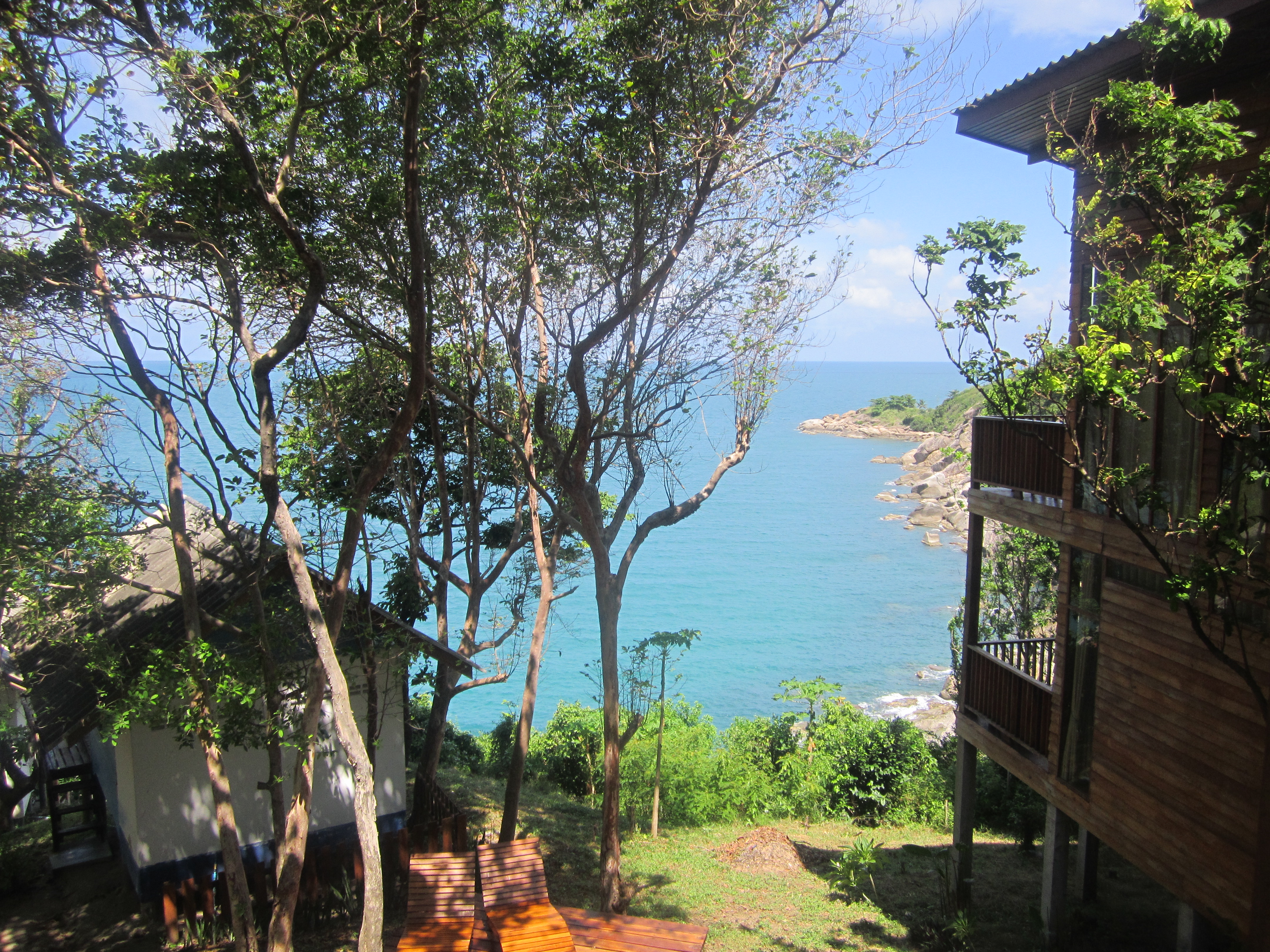 I would advise anyone returning to Thailand to return to the same accommodation if possible and email ahead and tell them about your return. They gave us a huge discount and welcomed us warmly on arrival. But when we saw our seaview cabins our jaws dropped. I don’t feel cabins are even the right word. The reception, common room and Sky Bar is at the top of a hill and overlooks both Sunset and Sunrise beach. A walk down the hill towards the sea leads you to the cabins amidst the trees, shaded enough that it’s cool and fresh, but still with a view of the sea beyond.